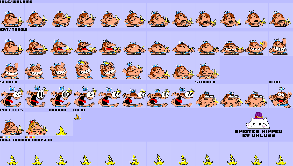 Fun fact: His stunned sprites are based from Donkey Kong's hurt sprites from the DK Country games
