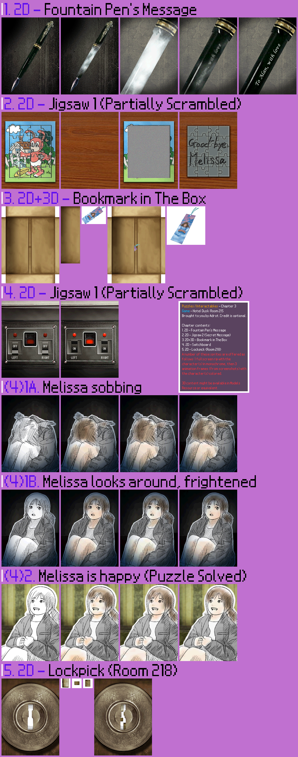 | Section | Puzzles / Interactables |