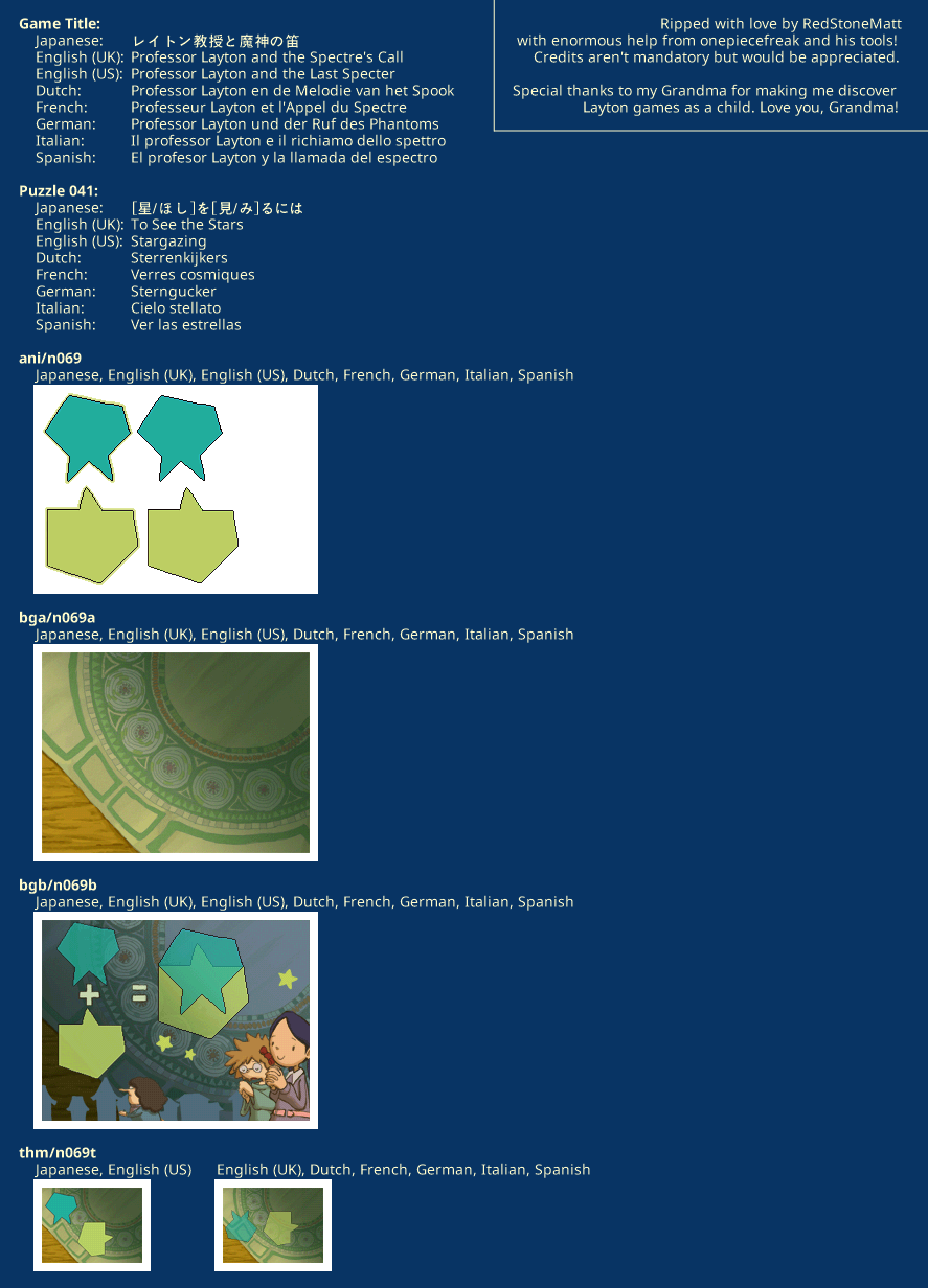| Game | Professor Layton and the Last Specter |