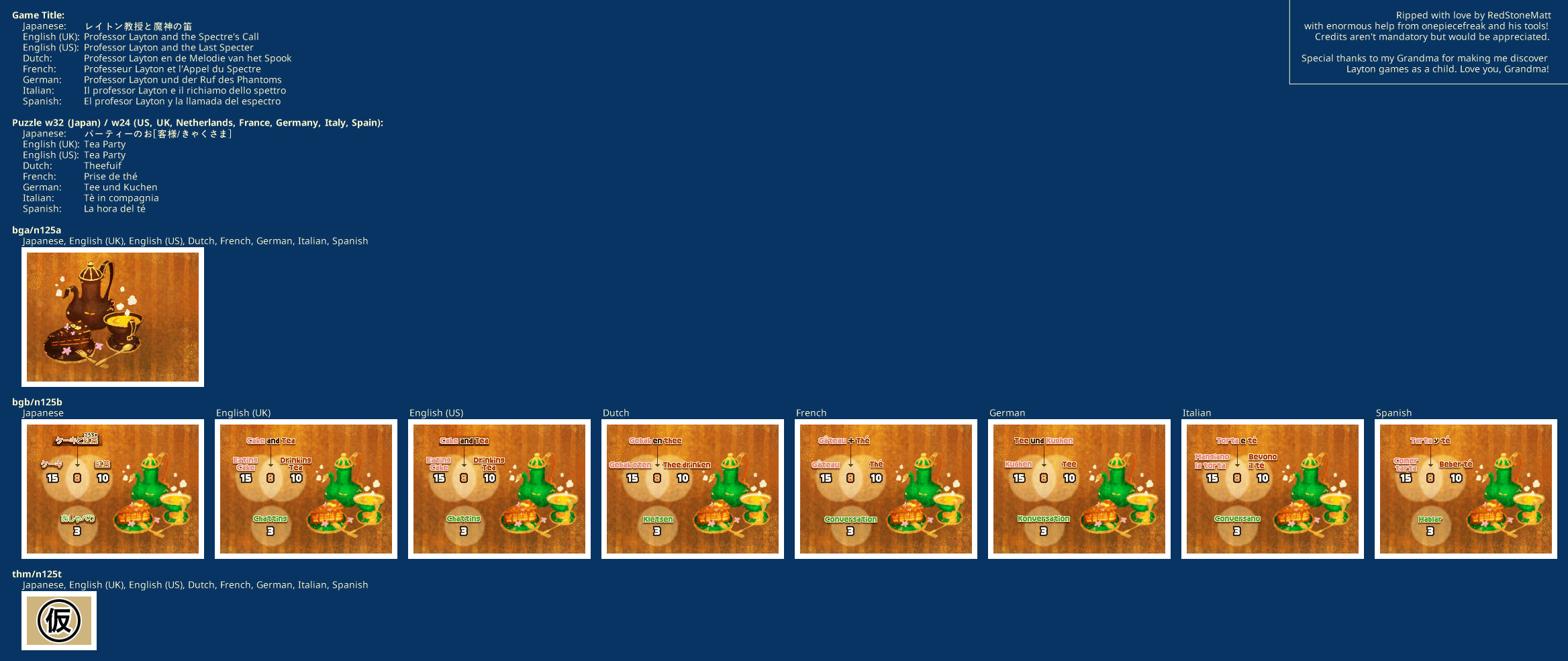 | Name | Puzzle w32 (Japan) / w24 (International) - Tea Party |