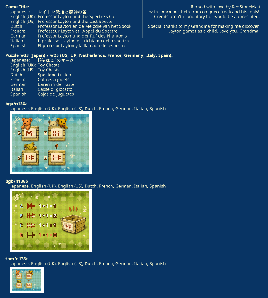 | Name | Puzzle w33 (Japan) / w25 (International) - Toy Chests |