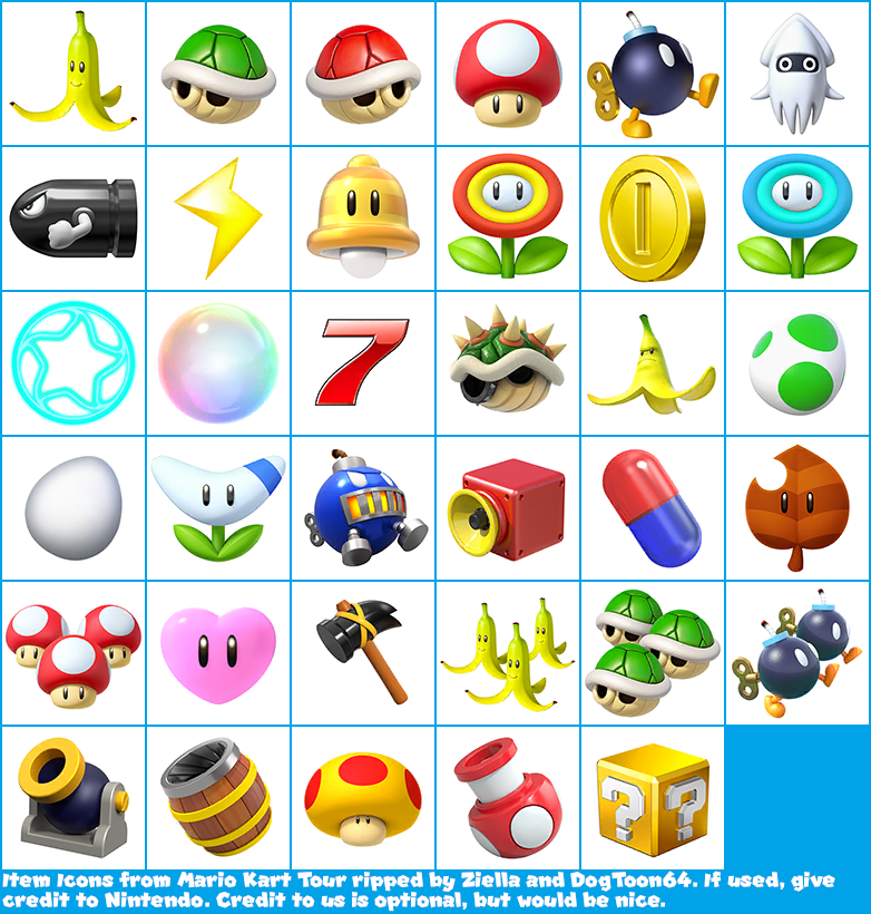 And the ice flower, and giant giga bomb, and birdo egg, and super bell, and tanooki leaf, and previously mentioned hammer and capsule