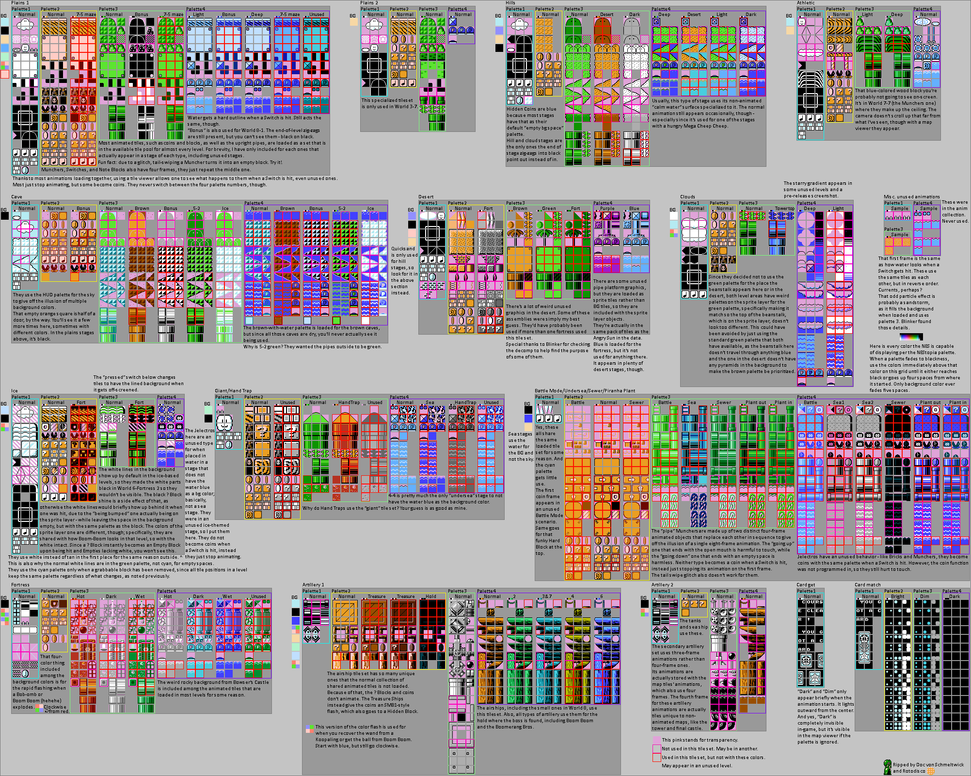 Revision sent: Huge update. Fixed colors to the NEStopia ones, fixed several mistakes, better distinguished between different tile sets, added transparency, removed several sprite layer things (moved to a different sheet), removed non-stage tiles (also moved to a different sheet), included several more palettes and unused tiles.