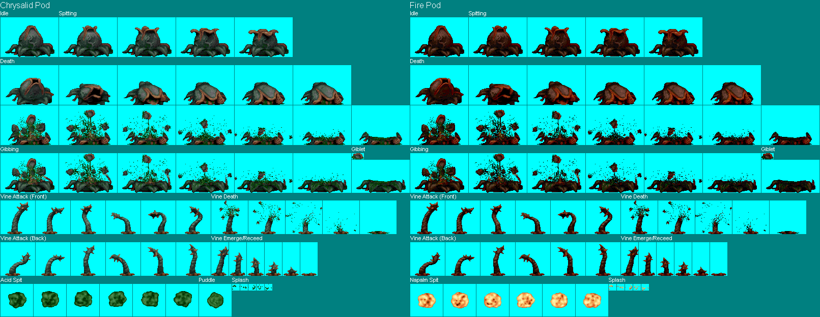 Missed the non-gibbing death. As an apology I added the projectiles.