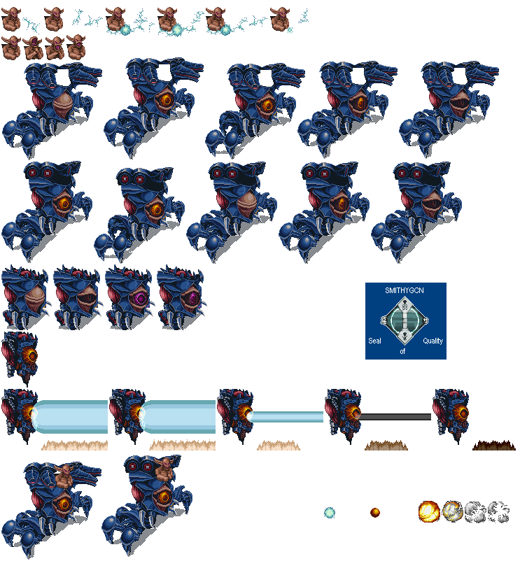 His mecha version doesn't have an extra sprite, the game uses a "poof" sfx on him (which does nothing) and immediately starts the fight.